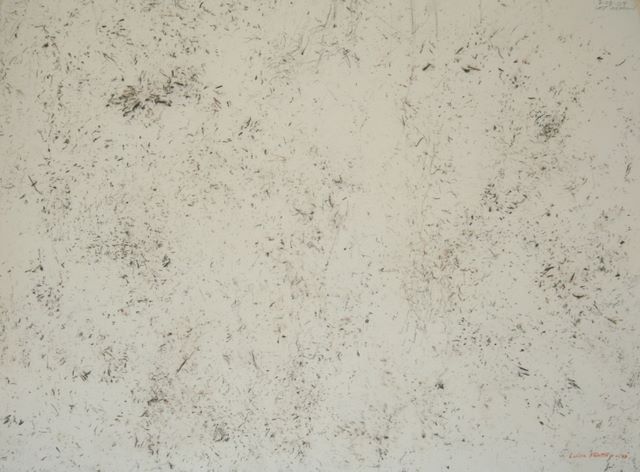 - Materials: grass, reeds, ash and twig charcoal on paper